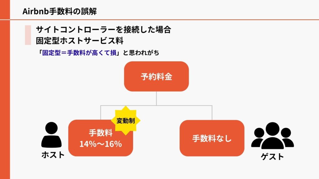 先述したように、サイトコントローラーを用いて複数のOTAで部屋を販売をするとAirbnbの手数料は「固定型ホストサービス料」に強制的に変更されます。